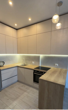 Вбудована кухня, холодильник, електроплита.