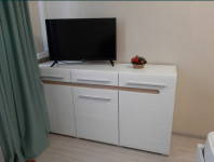 Пральна машина, бойлер електрична поверхня, електрична духовка, витяжка, чайник, кондиціонер, телевізор в кімнаті, велика шафа-купе, білосніжне ліжко з новим ортопедичним матрацом і місткий комод з цієї ж колекції, телевізор.