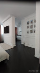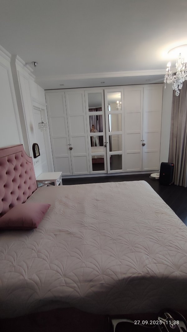 Встроенные шкафы, кровать и диван.
